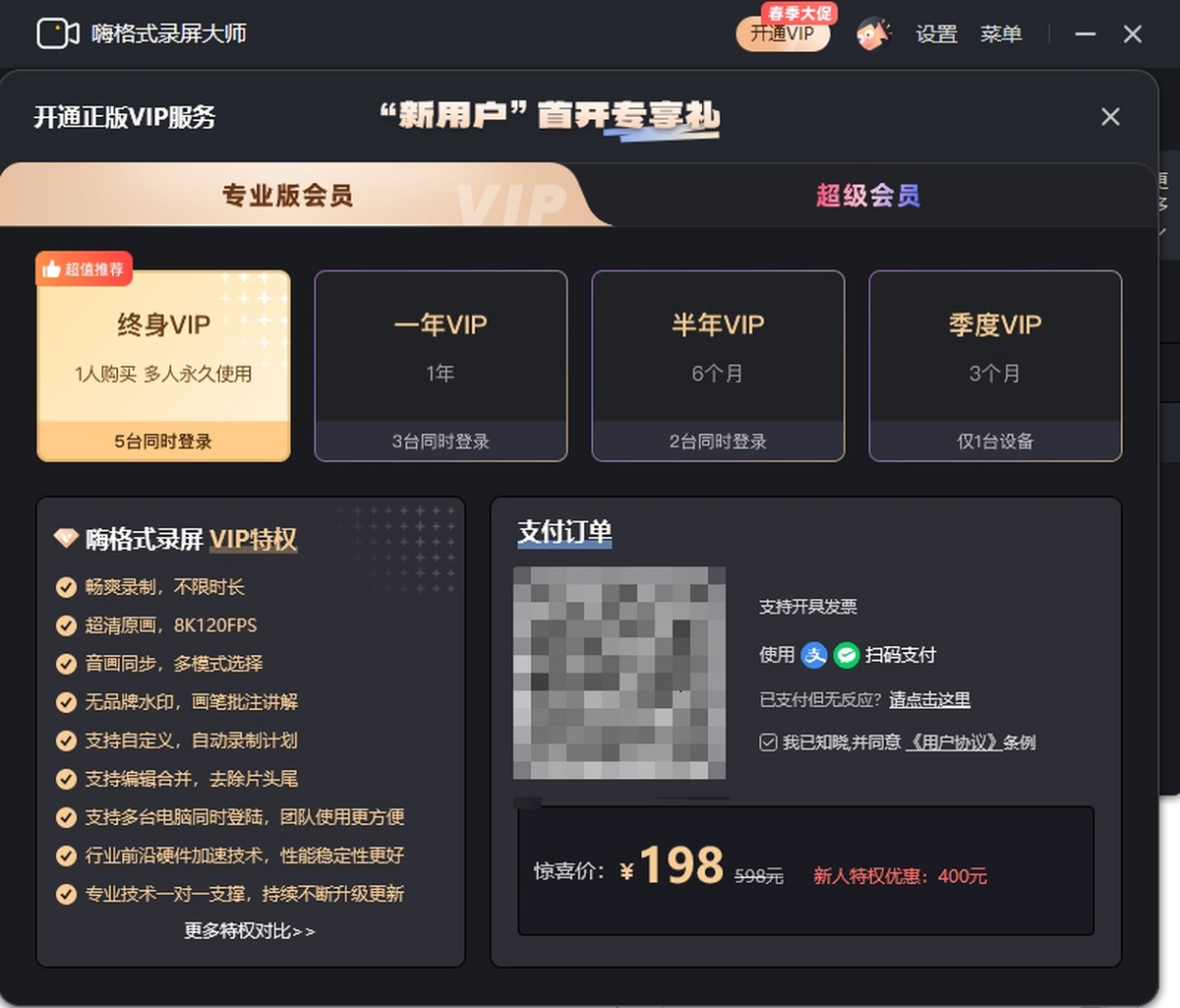 【嗨格式录屏大师会员权益】