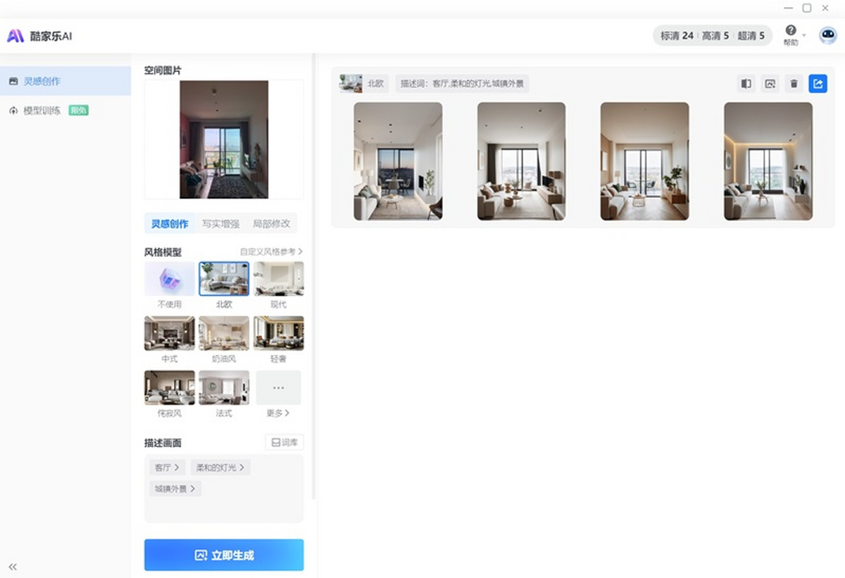 酷家乐智能效果图设计软件是依托于酷家乐海量优秀设计方案,通过智能算法实现方案的自动设计应用,帮助用户快速完成方案设计,提供设计灵感,大大提高设计效率。
