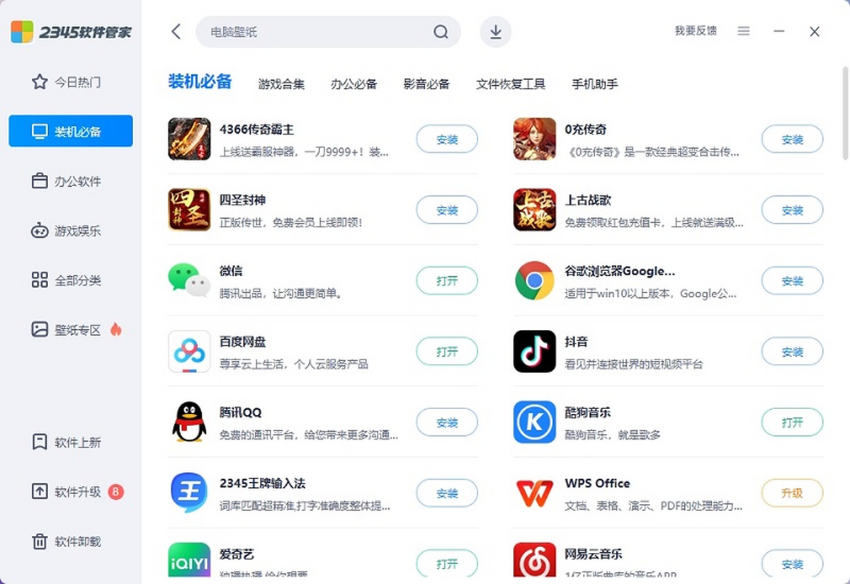 2345软件管家是2345官方推出的一款全新产品,2345软件管家提供软件资源下载、软件安装、升级、卸载,一键简单管理。帮您轻松管理电脑上的软件。