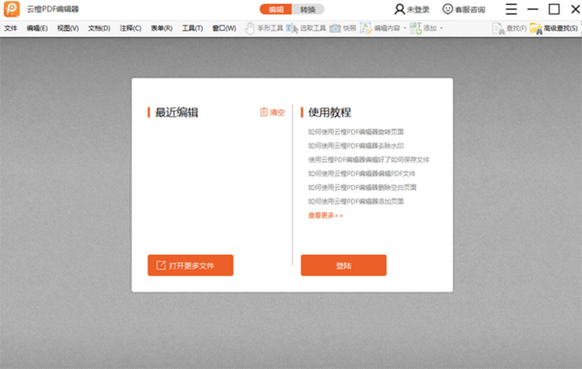 云橙PDF编辑器软件是一款专业的PDF文件编辑工具软件,为PDF文档处理提供一站式解决方案,软件集合了:PDF编辑、阅读、批注、编辑文本、绘图标注、添加照片、填写表单、签署合同、合并PDF文档、删除PDF文档、插入PDF文档、PDF页面旋转、PDF页面提取、PDF转图片以及加密保护,自动识别字体,可进行全文标注,删除、添加文档,插入图片、链接,文字大小颜色更改,文档签章、高亮等功能。