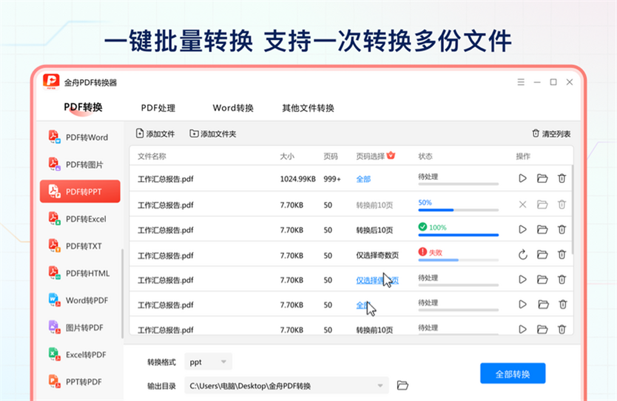 2.转换功能灵活多样:金舟PDF转换器拥有极为灵活的转换自定义模块。用户可以非常轻松地实现指定转换样式、转换范围以及指定转换路径等。