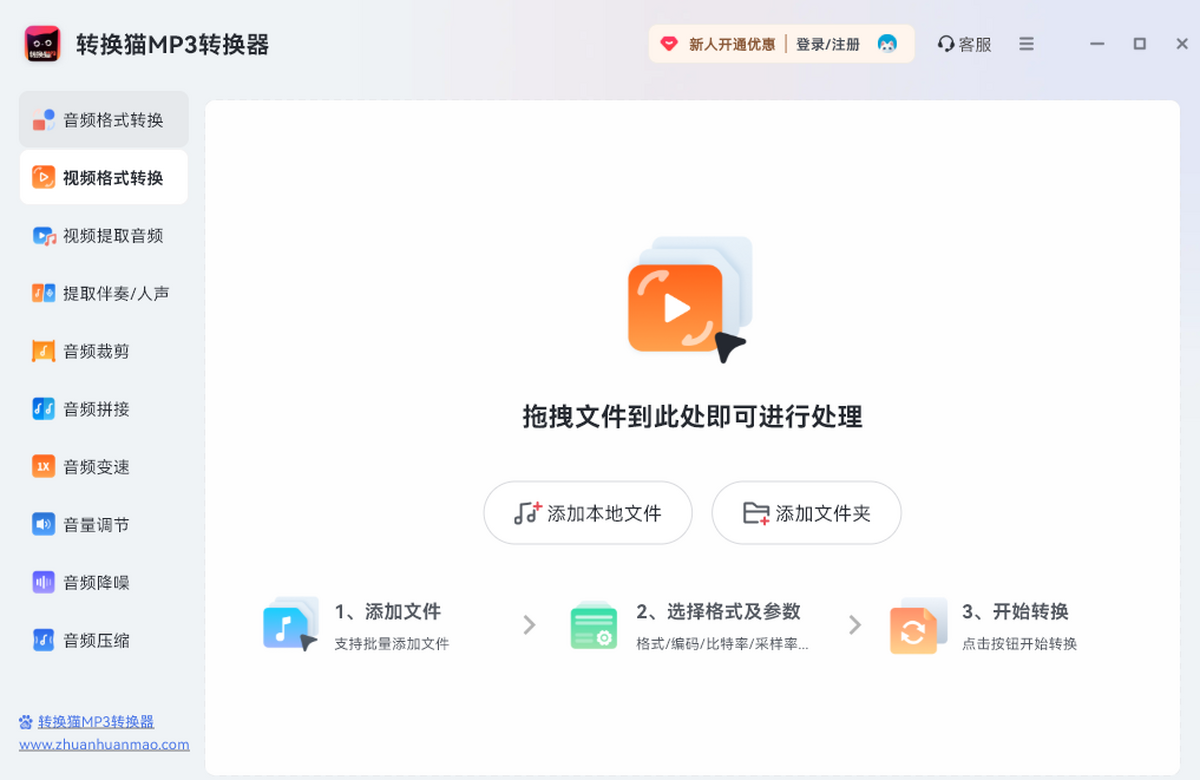 转换猫MP3转换器主持全格式音视频1秒互转、AI智能分离人声伴奏、专业级降噪剪辑压缩,几乎支持全格式音视频转换,可意见保存分享。同时支持音频压缩,视频音频提取,人生伴奏分离以及各种音频处理需求。