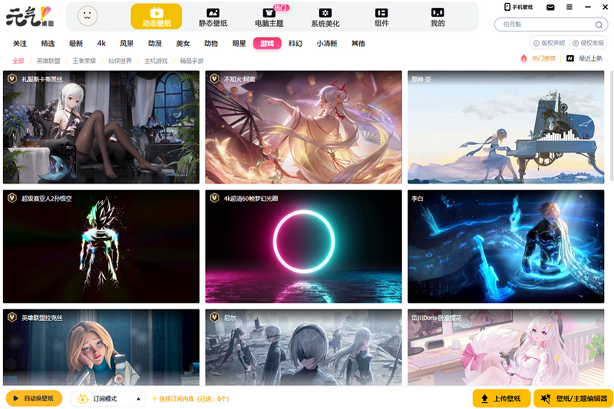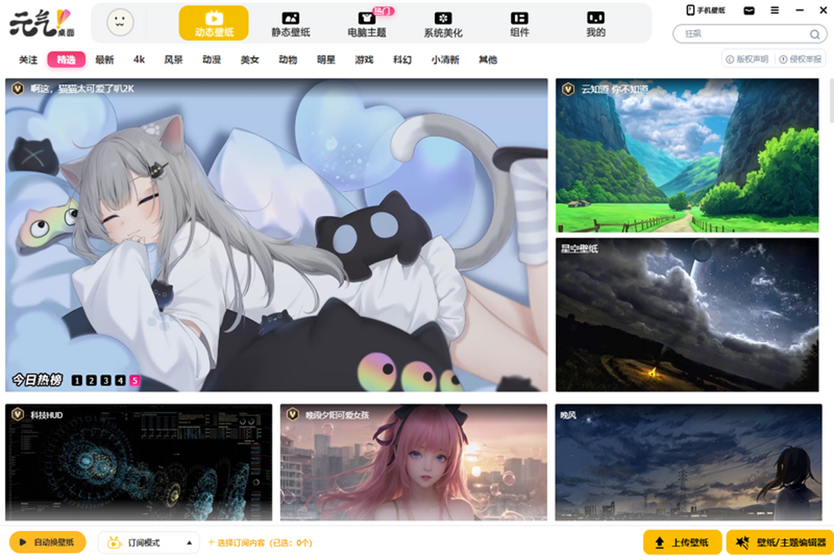 元气动态桌面专为年轻人打造的动静态壁纸及桌面美化的电脑应用软件丶海量高清动静态壁纸下载使用。