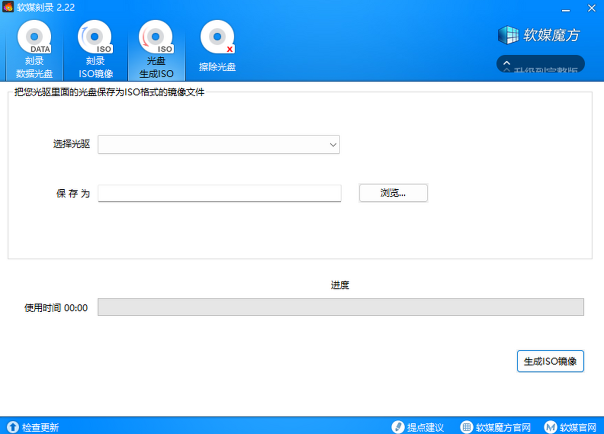 软媒刻录官方最新版是一款功能非常强大的优化刻录软件,从最新版魔方电脑大师中提取出来的一个光盘刻录工具,支持许多数据和ISO镜像刻录,还能把光盘转换成ISO镜像,转换大小才200多K。