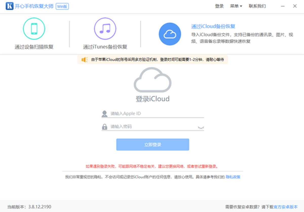 开心手机恢复大师是一款强大的苹果数据恢复软件,操作简单,兼容Windows和Mac平台,支持iOS设备微信聊天记录恢复及短信、通讯录、备忘录、照片等删除恢复和备份。
