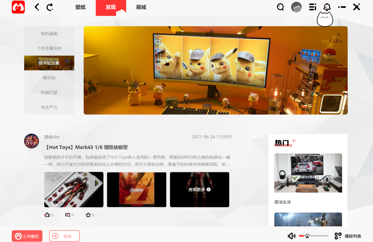 《漫兜兜》打造趣味桌搭潮玩社区,鼓励用户分享桌搭理念,为用户在桌面改造时提供解决方案。让用户在社区中讨论交流、种草好物。用户可以在这里尽情的交流、分享自己所喜爱的一切新奇有趣的事物,包含且不限于潮玩,数码3C产品,模型手办,PC外设,壁纸等等。在这里你能找到更多志同道合的伙伴,发现更多新奇有趣的玩意,找到自己想要的生活乐趣。