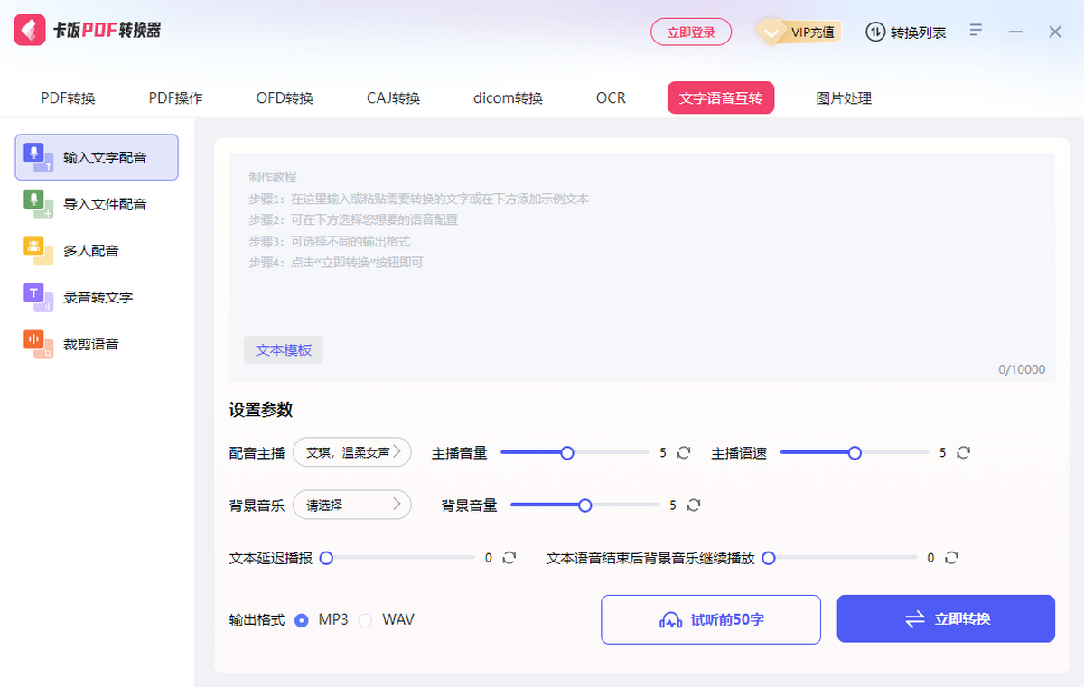 卡饭PDF转换器是一款功能全面的转换软件,在提供wps等市面上热门PDF转换器基础转换功能的同时还支持CAJ、OFD、DICOM等格式转换;为了保证转换精确度,哪怕是较为模糊的PDF文件,我们仍可以使用软件的OCR文字识别的功能进行转换。拥有PDF加密、解密、拆分、合并、压缩、删除页等更便捷的PDF编辑功能,转换编辑操作一气呵成,无需使用其他软件。在此新版本中新增了图片处理和语音处理,集之大成满足更多人群的办公需求!
