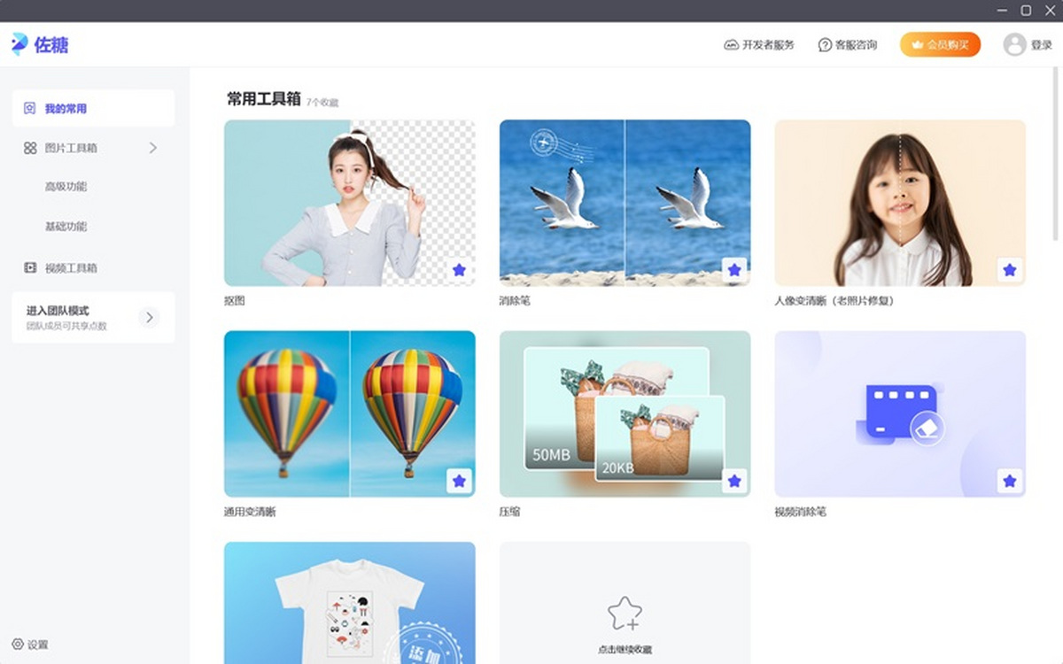 佐糖是一款一站式专业级的图片创作工具,采用了人工智能AI进行自动抠图。不用ps,无需任何作图、修图技巧,0基础的小白、新手也能够轻松上手,一步就能制作适用于各行各业的精美图片。 佐糖的功能强大齐全,拥有【一键抠图】、【批量抠图】、【AI消除笔】、【照片修复】、【AI背景合成】、【无损压缩】、【自制证件照】等功能。其中AI背景合成颠覆传统商品图制作过程,无需棚拍,上传产品图,AI自动一键抠图,精准分离背景,并完美融合真实背景,轻松生成爆款商品图。佐糖专注于图像领域,提供丰富的图像处理工具,将复杂操作极致简化,真正实现让图像创作更简单。