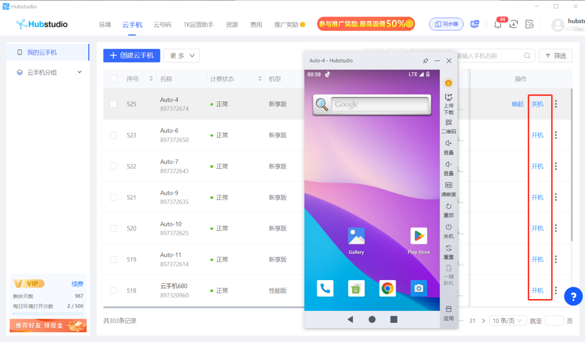 云手机管理界面