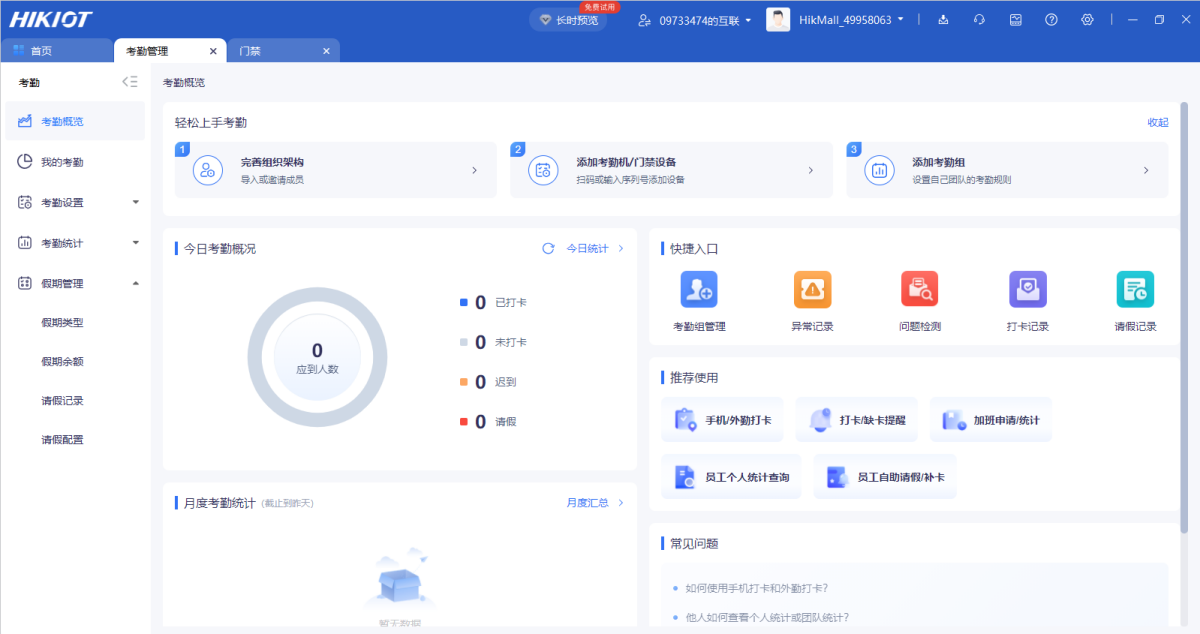 海康互联客户端是与海康互联移动客户端、海康互联网页版同步的电脑客户端软件,支持用户连接公网,对在海康互联上云的设备进行远程操作和配置管理。支持的设备类型包括视频设备、门禁设备、可视对讲设备、报警主机、消防设备等。还可以通过管理账号、角色与权限来分配账号权限,满足团队用户管理不同设备、不同区域、不同功能的需要。