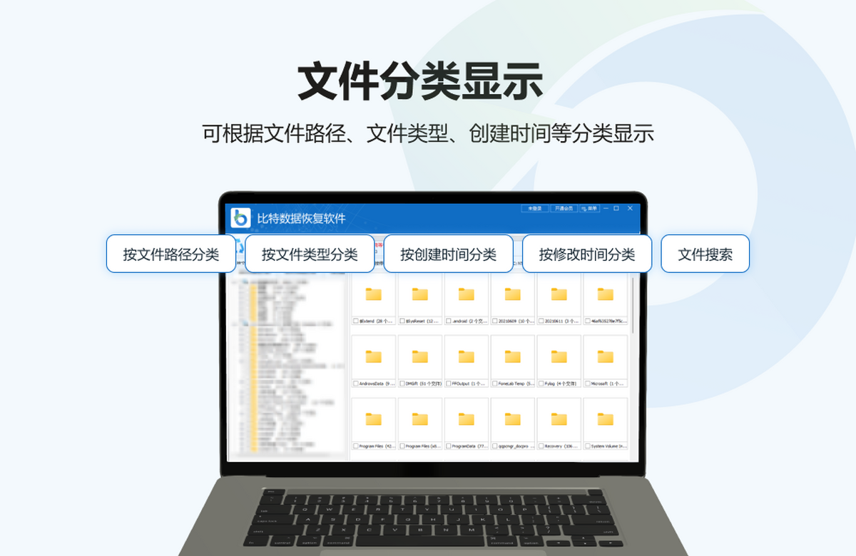 数据恢复,U盘数据恢复,硬盘数据恢复,电脑数据恢复,文件数据恢复,内存卡数据恢复,相机卡CF卡数据恢复,照片恢复,sd卡数据恢复,比特数据恢复软件一款万能的数据恢复软件,可以有效恢复硬件、软件或人为误操作引起的文件、数据丢失问题;误删除文件、误格式化分区、误分区、文件不能复制、分区打不开、提示RAW、提示磁盘U盘未格式化等文件恢复;支持硬盘、U盘、移动硬盘、电脑、内存卡、SD卡、CF卡、TF卡、相机卡、手机卡等多种设备文件恢复;可恢复文件类型包含:照片、视频、办公文档、压缩包文件、音频等;可恢复文件格式:Word/Excel/PPT/CAD/CDR/PSD/JPG/AVI/MPG/MP4/3GP/RMVB/PDF/WAV/ZIP/RAR/X3F/LXE/FLV/RAF/VSD等,支持FAT16、FAT32、NTFS、exFat等多种文件系统,完美兼容全线Windows系统,极速扫描,边扫描边显示,随时可以恢复找到的文件数据。