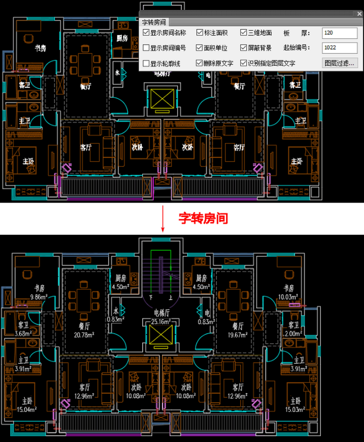 10、改进【图变单色】命令,可以选择需要的图层变颜色,支持修改自身颜色不是bylayer的对象颜色;支持修改天正对象内部设置颜色;配套的【颜色恢复】命令与之做相应修改;