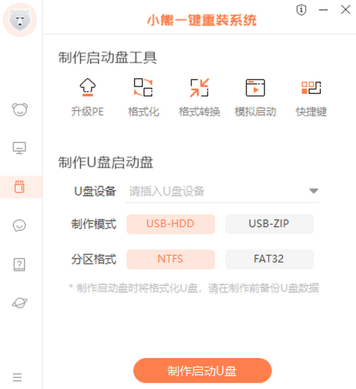 小熊一键重装系统是一款集U盘启动、一键装机、一键备份/还原的装机辅助工具。其体积小巧,实用,设计人性化,轻轻一键,即可轻松重装win7、win8、win10。同时它也是一款u盘启动盘制作工具,为电脑无法启动,黑屏,蓝屏等问题提供安全、稳定、简捷的u盘装系统,彻底解决没有光驱带来的烦恼。