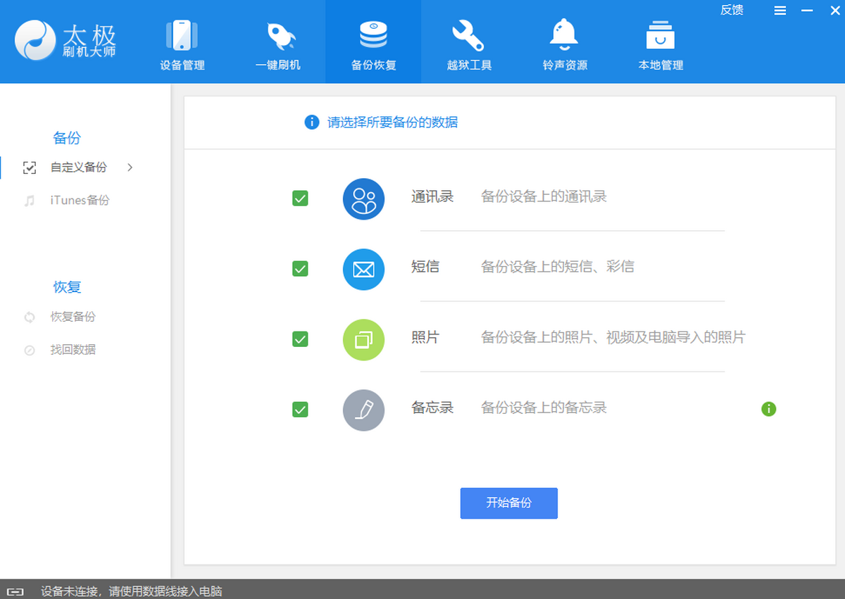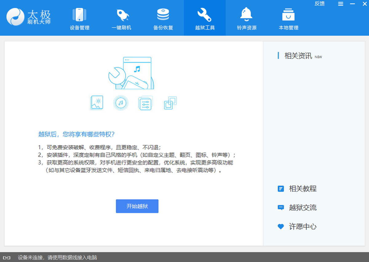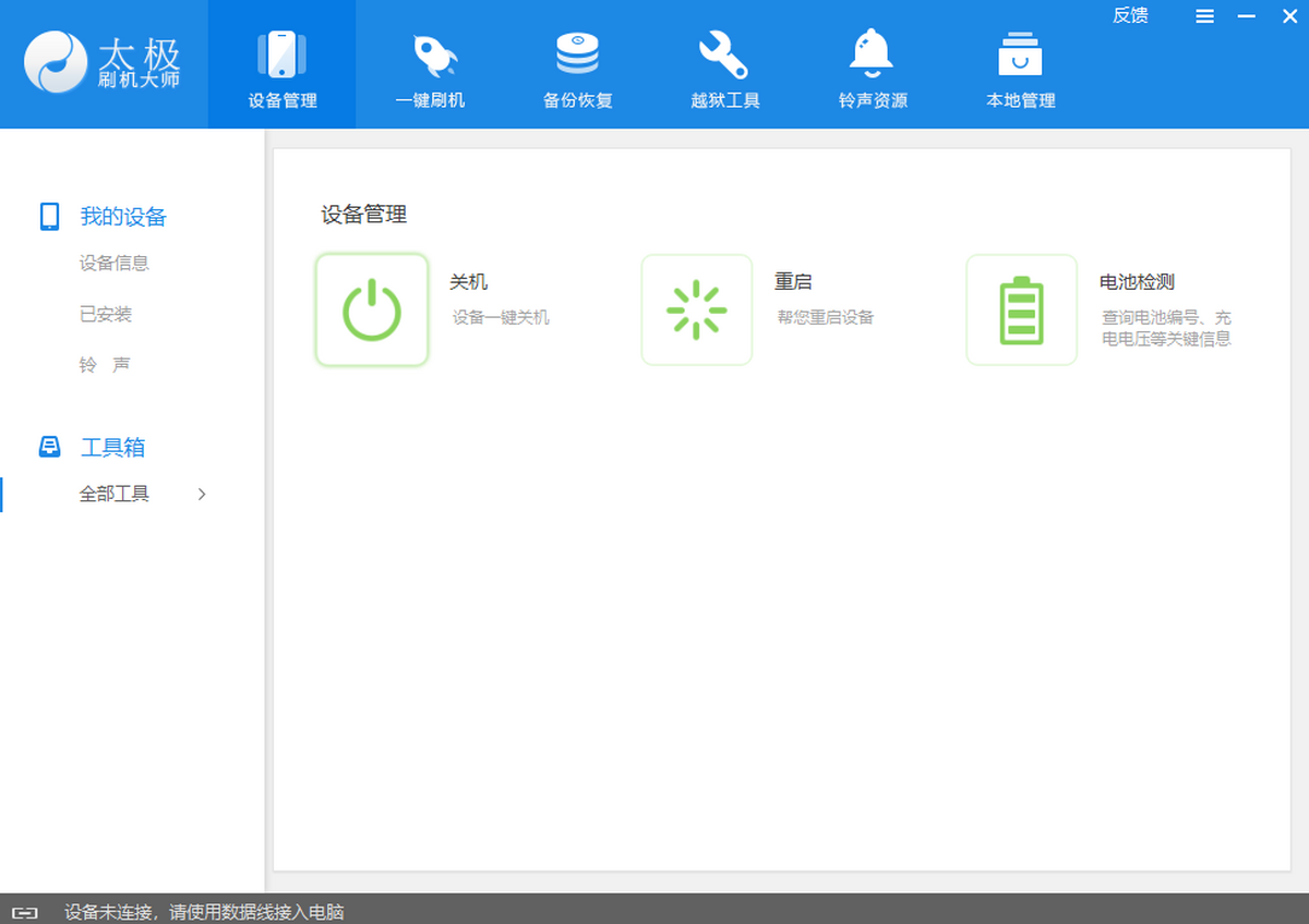 太极刷机大师是一款综合刷机、越狱、手机管理等多种功能的PC端管理软件,支持自动匹配固件,一键刷机,一键越狱等功能,同时包含多种刷机模式和多种备份模式。