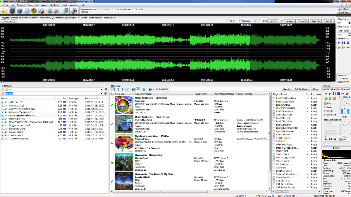 MP4 Stream Editor免费版是一款操作简单、功能强大、专业实用Mp3音频文件管理工具,软件可以对Mp3进行编码、重编码、转换成Wav、分割、合并等操作,也可以使用内置的ID3v2标签编辑器对Mp3文件增加标签,甚至可以直接录制Mp3流。需要的朋友快来下载体验吧!
