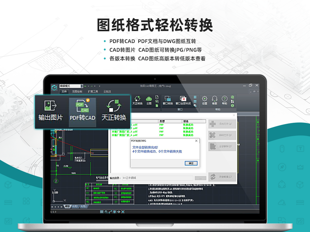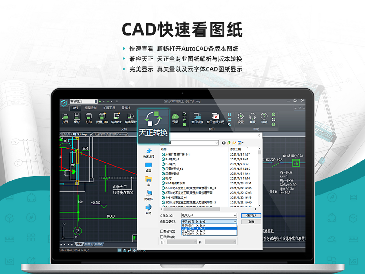 可实现CAD快速看图、PDF转CAD图纸,DWG图纸编辑、DWG批注、DWG测量标注、CAD测量、CAD文字查找、导出PDF/JPG、CAD图纸比较、CAD图层管理、Excel表格等功能,无水印打印、随时共享设计进度,无需发送DWG图纸,可分享链接给他人查看,不担心图纸安全和侵权。提供CAD测量工具,适用于工程建筑、施工、现场勘测、家居装饰装修、机械制图、测量、测绘等行业;全面兼容天正各版本,天正专业图纸显示更完整、更精准,助力CAD自学、工地建筑建设、工程测量员、设计师画图绘图等。