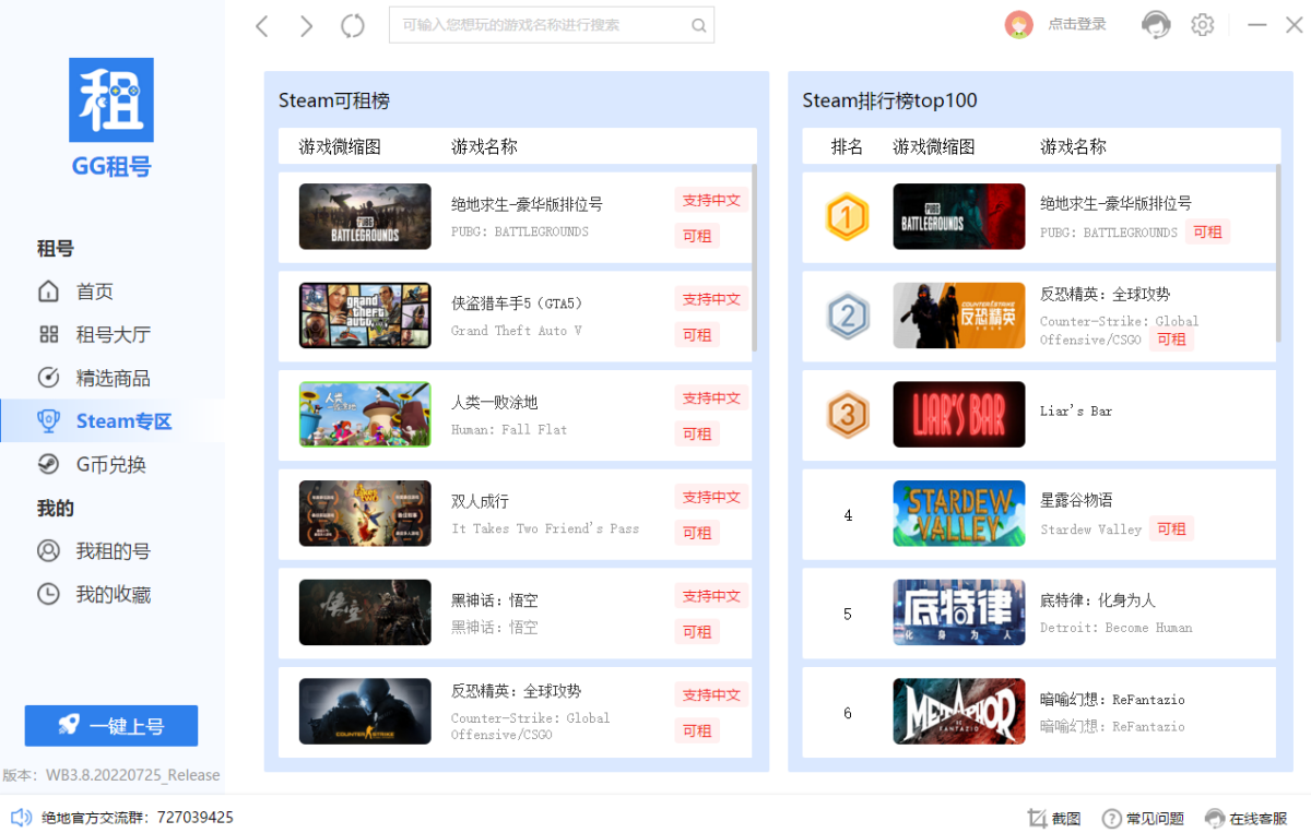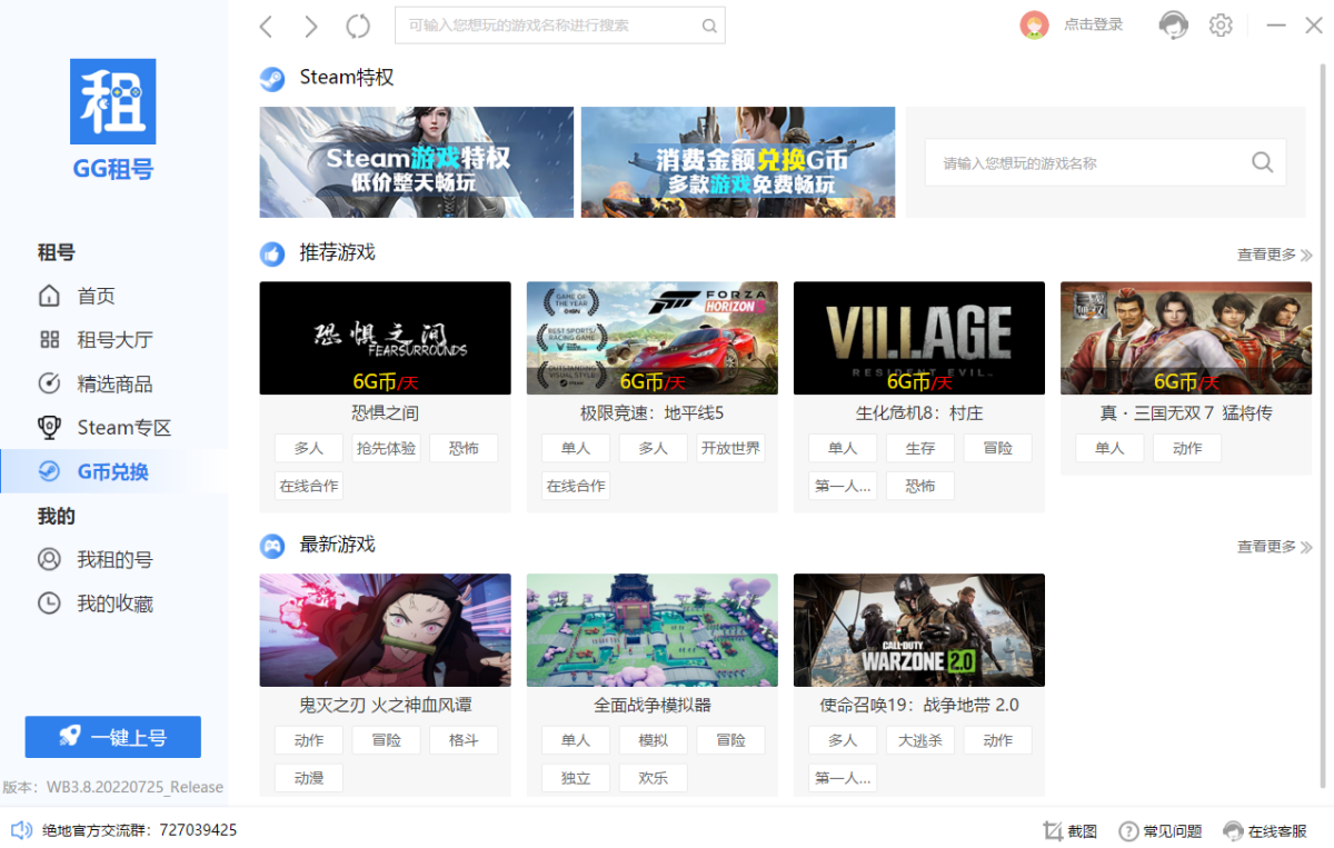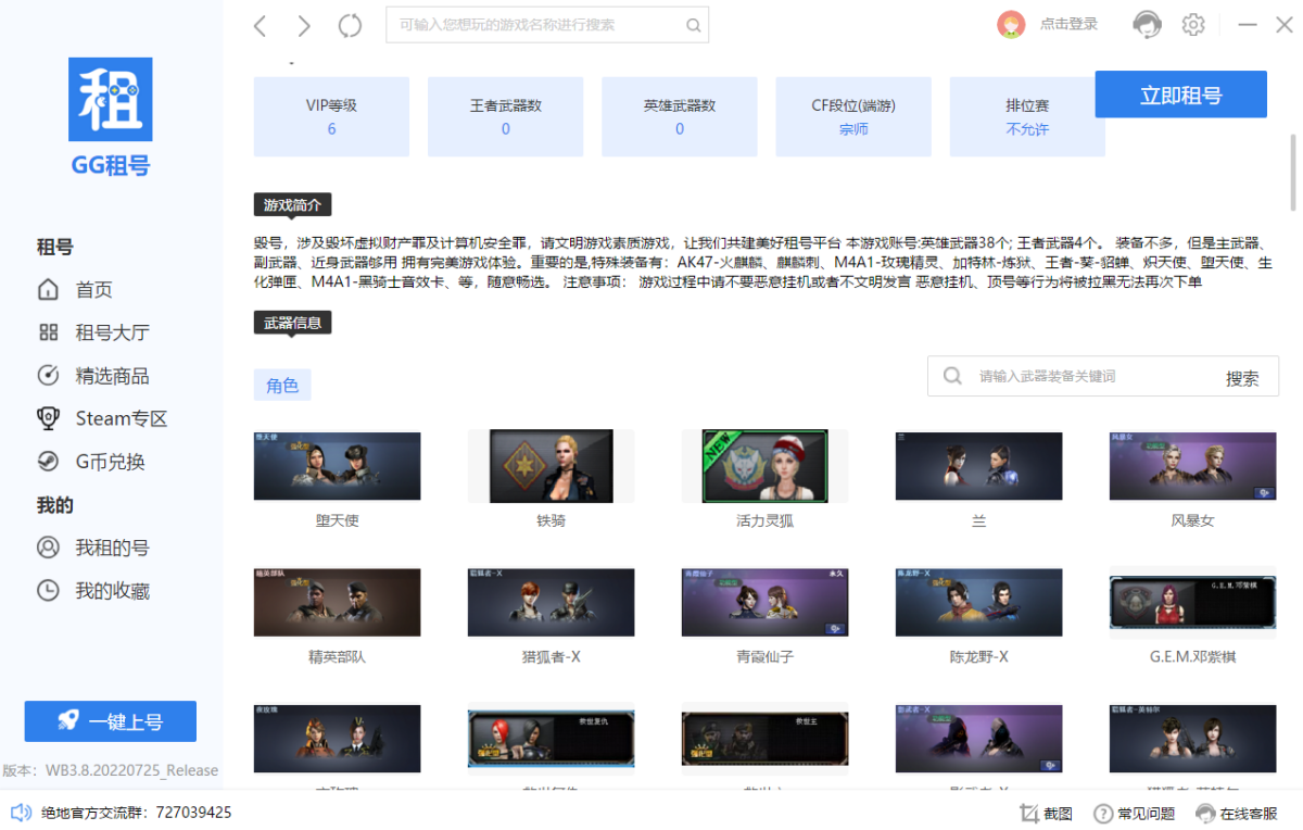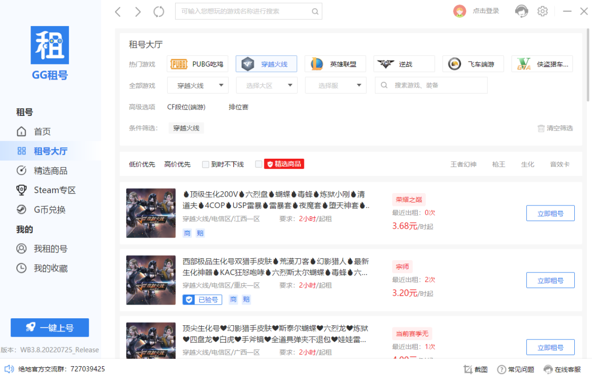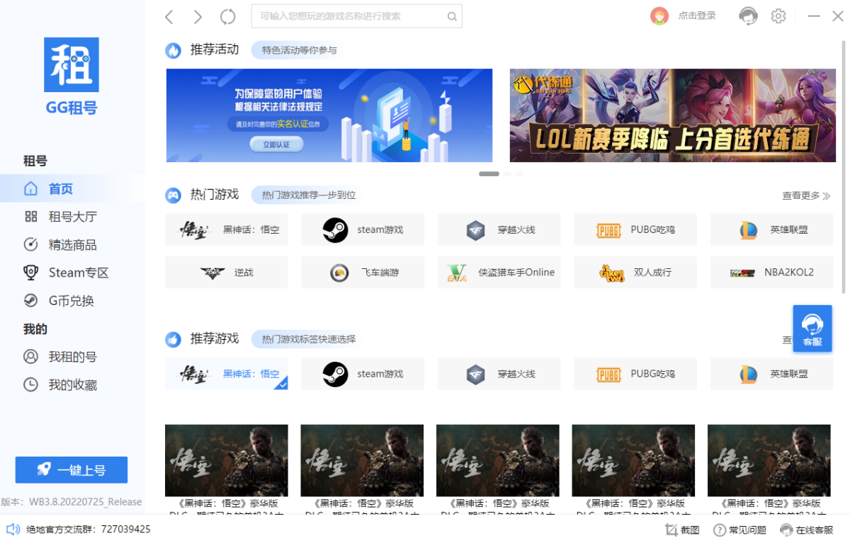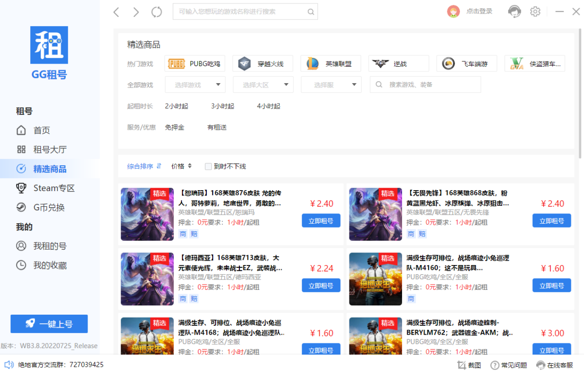 GG租号致力于打造国内先进的游戏账号体验技术服务,为号主提供最安全账号放置系统,迎合广大游戏市场需要,以最优惠的价格为玩家提供海量优质账号、装备资源租赁,提高游戏体验。同时RMB玩家可通过平台出租闲置游戏装备及账号获取收益,多渠道增值盈利为网吧创造更大价值!