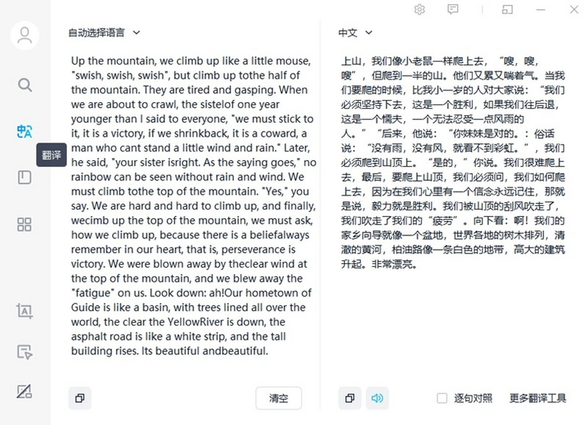 语音翻译:音频识别,在线翻译并快速转写为文字,可读即可译。 取词划译:全新桌面软件,支持浏览器及办公软件取词,查词更简单