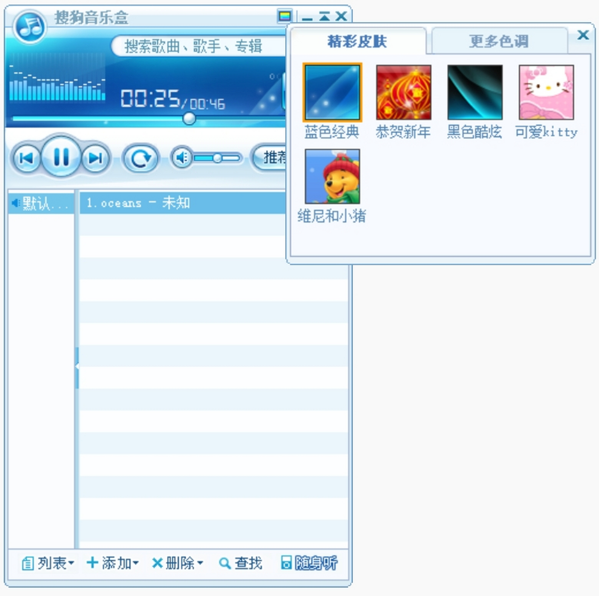 搜狗音乐盒是一款集音乐推荐、查找、下载、播放功能为一体的音乐播放器。结合强大的搜狗mp3搜索引擎,向用户提供最全、最热歌曲的查找与试听服务!为您创造一款集音乐查找、下载和播放为一体的软件。