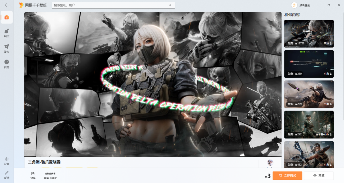 网易千千壁纸是网易自研的拥有海量超清动态壁纸、壁纸编辑器的桌面美化软件。内置壁纸引擎,可真实还原人物动效、雨雪特效等;壁纸可互动超好玩,特效随鼠标与音乐节奏跃动;壁纸可高度自定义,随心所欲打造专属壁纸。