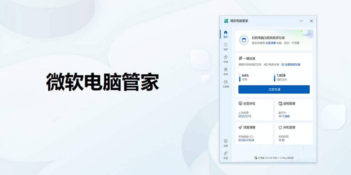深度清理系统存储空间,管理大文件,开启磁盘感知,释放您的电脑存储空间。