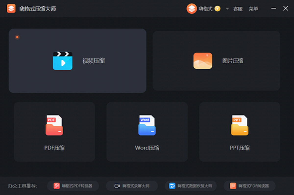 嗨格式压缩大师是一款Windows平台上的专业压缩软件,提供了五种类型文件的压缩功能,包括视频、图片、PDF、Word以及PPT。