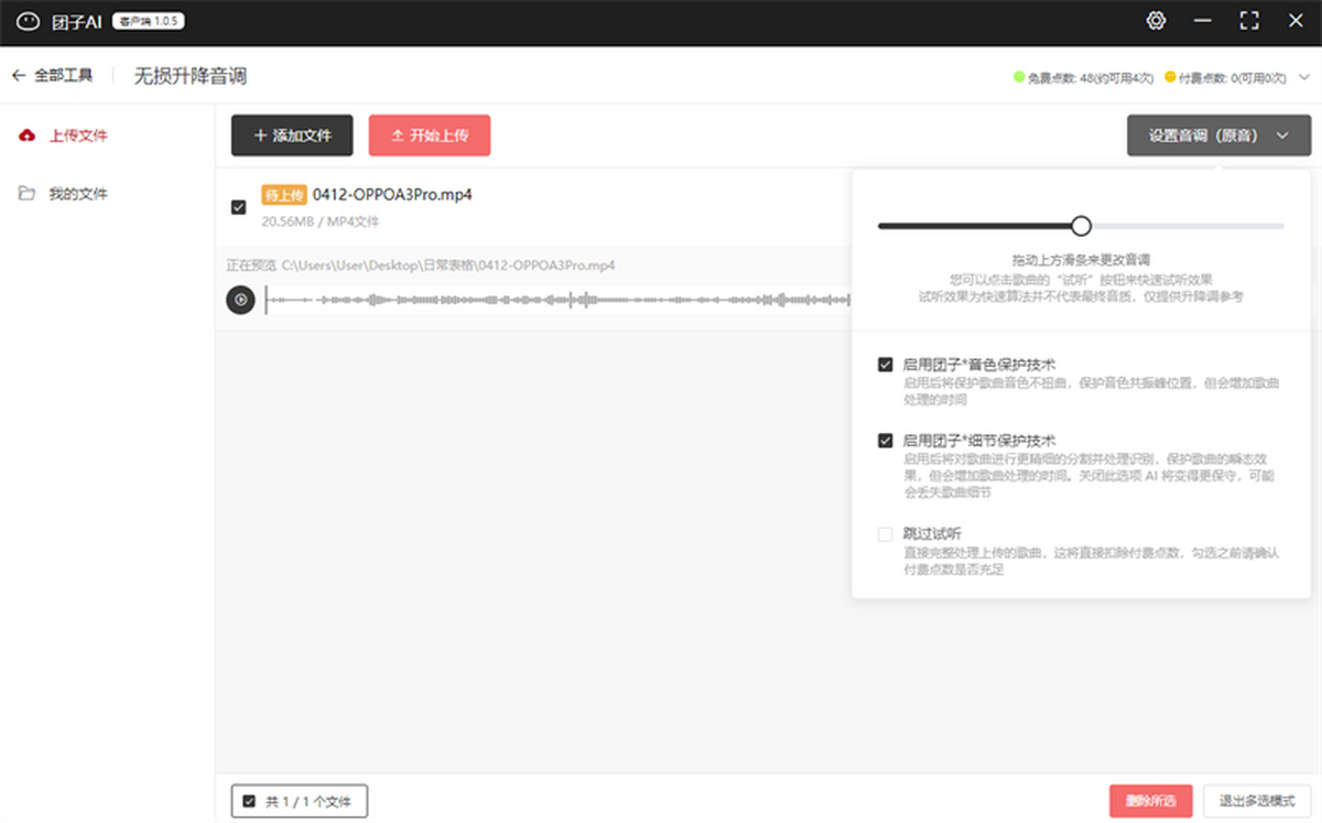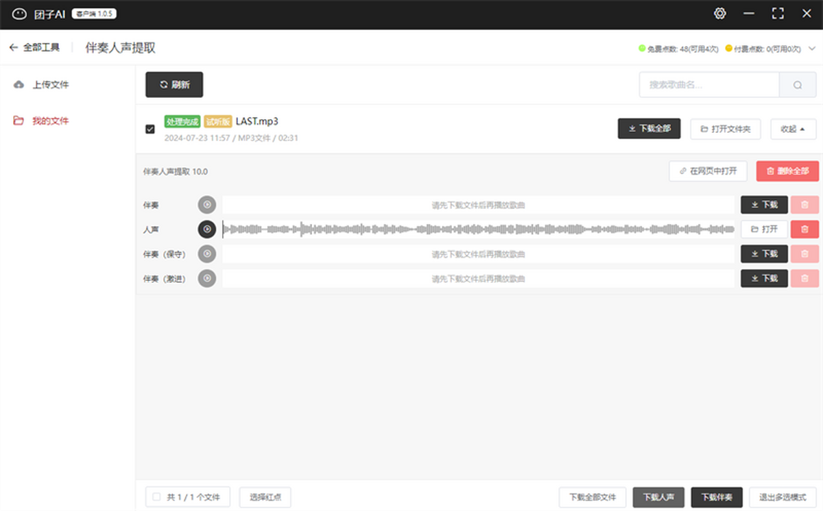 团子AI是在线的人工智能工具箱,提供伴奏人声提取、任意乐器分离、无损升降掉等有趣且实用的功能。零门槛,快,简单,而且好。