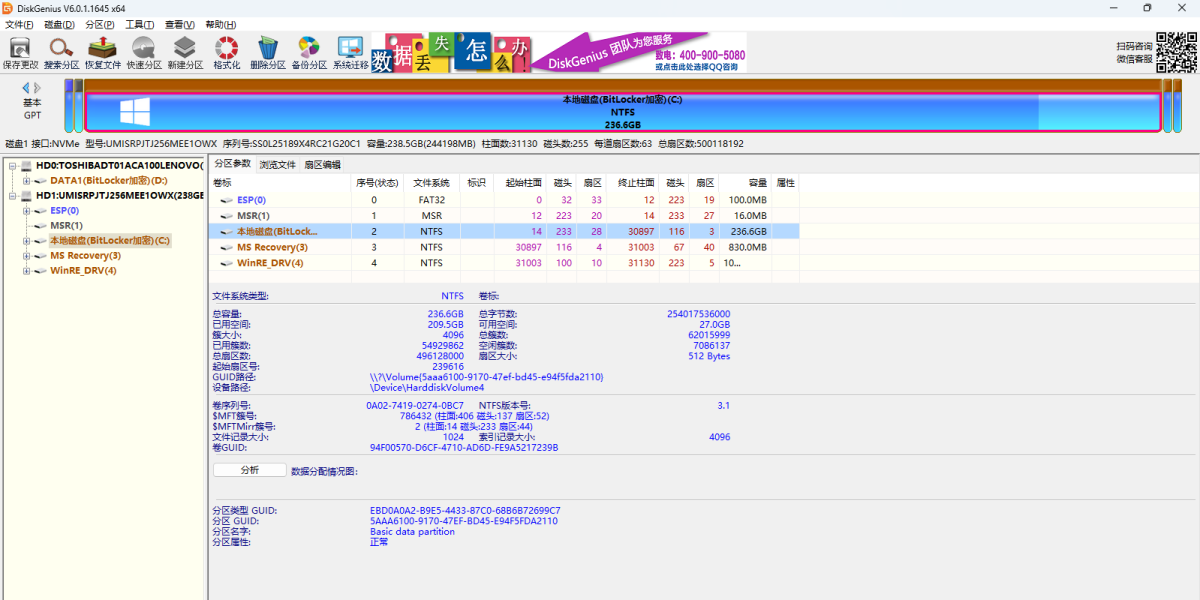 12、完善分区表备份与还原功能对BitLocker加密分区的支持。