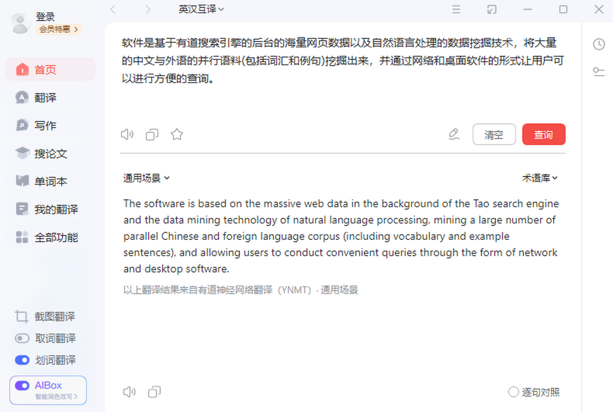 支持多浏览器环境,鼠标划词或双击即可获得翻译结果,可在文本中随意选择段落、长句及短语词组进行翻译。
