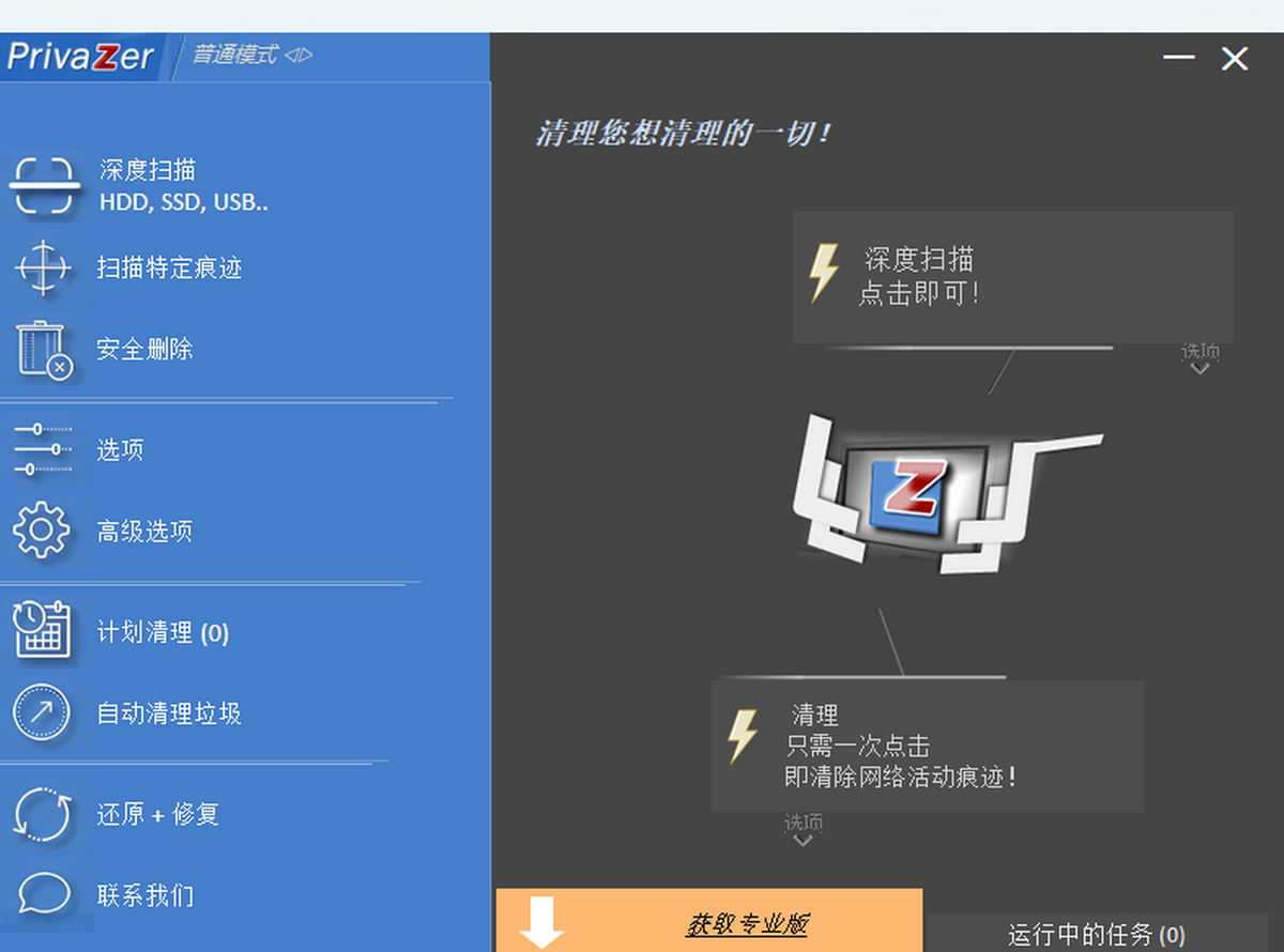 Goversoft Privazer是一款清除历史记录工具。在现今隐私这么重要,而且又容易被发现的年代,PrivaZer能很好地为你服务。通过使用PrivaZer,你能将自己电脑设备中的各种历史记录和浏览痕迹都清理干净,而且它还可以进行深度扫描操作,能够安全地清理系统、消灭任何残存的网站浏览或其他痕迹,给你一个干净的环境,保护你的隐私安全。