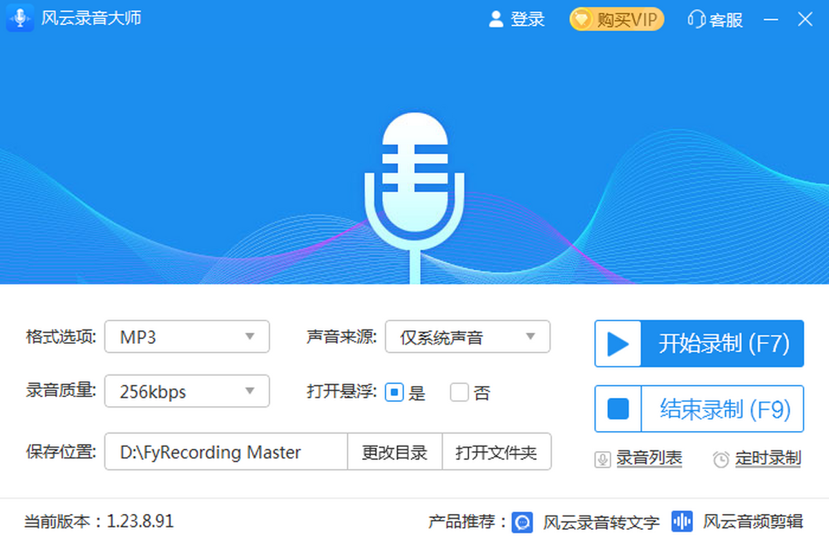 风云录音大师软件具有强大技术内核,可以完美还原录制环境,软件界面清晰,操作简单,看起来一目了然,软件支持多种音频格式录制,如:mp3、wav、mp4等,即可实时录制您想要的音频,同时支持悬浮小窗口录音,提升自己的工作效率。