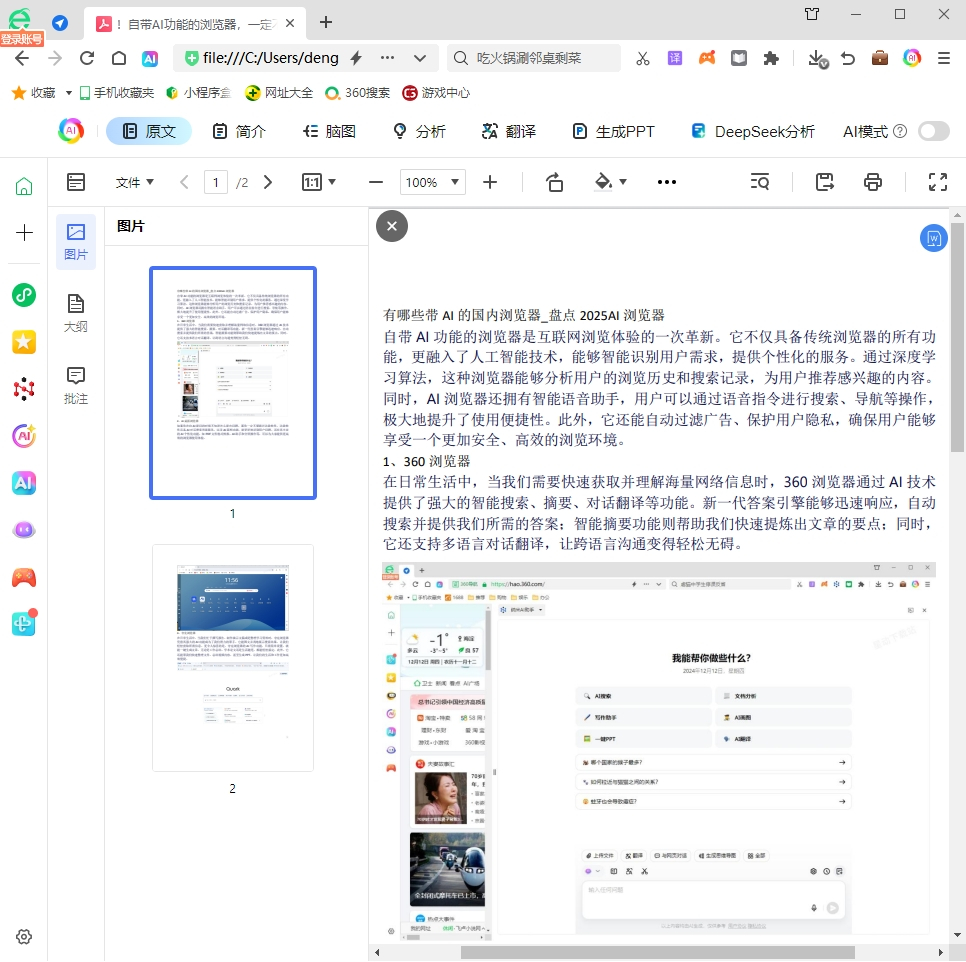 360浏览器特色AI功能: