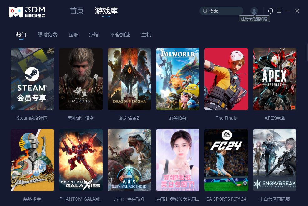 3DM网游加速器能高效解决游戏中遇到的掉线、延时、丢包等问题。