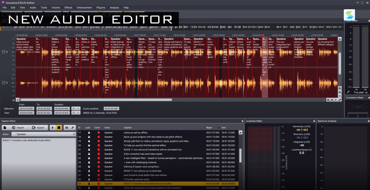 不过EDIUS真正的卓越之处在于它能够高速处理多种新格式,包括 Sony XAVC(Intra/LongGOP)/XAVC S、Panasonic AVC-Ultra、Canon XF-AVC、H.265/HEVC以及HDR编辑和颜色分级的各种Log / RAW文件。