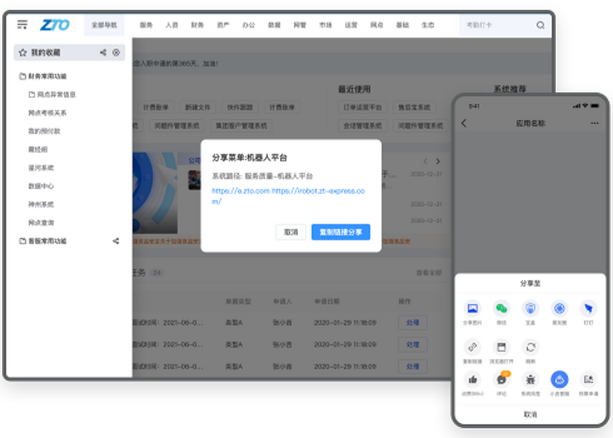 对接ZFE(ZTO Front End,中通统一前端)七层流量转发平台,打造VPN替代方案,全程无死角控制流量,打通南北向访问链路,实时放行/监控/阻断请求,分析用户行为。