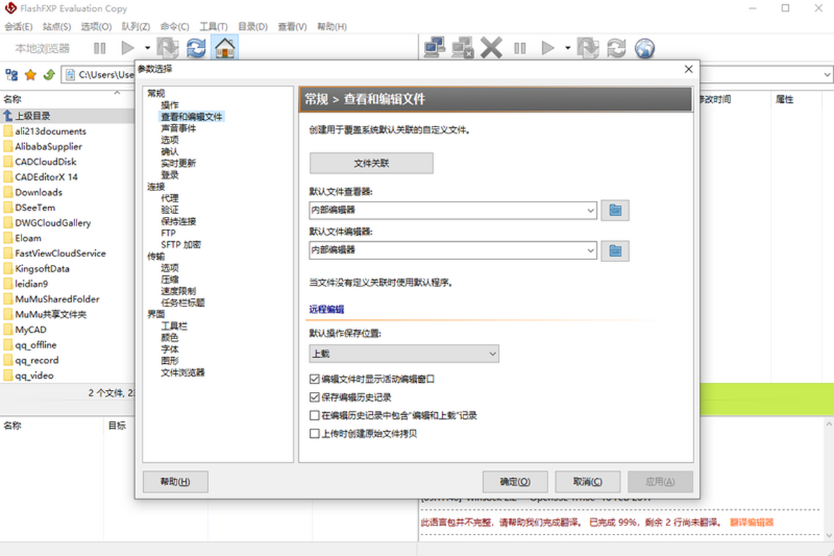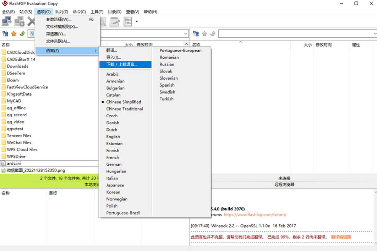flashfxp是功能强大的FXP/FTP软件,融合了一些其他优秀FTP软件的优点,如像CuteFTP一样可以比较文件夹,支持彩色文字显示;像BpFTP支持多文件夹选择文件,能够缓存文件夹;像LeapFTP一样的外观界面。